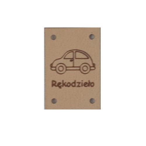 B-35 Naszywka z ekoskóry 2x3 cm "Rękodzieło" Autko beż