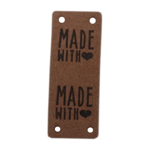 B-45 Naszywka zamszowa, metka składana "Made with" Serce BRĄZ