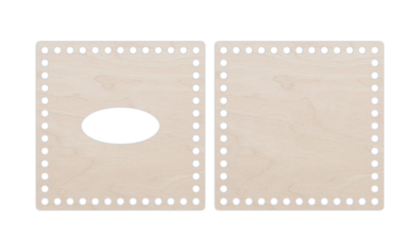 Baza i wieko do chustecznika z dziurkami do obrobienia szydełkiem.