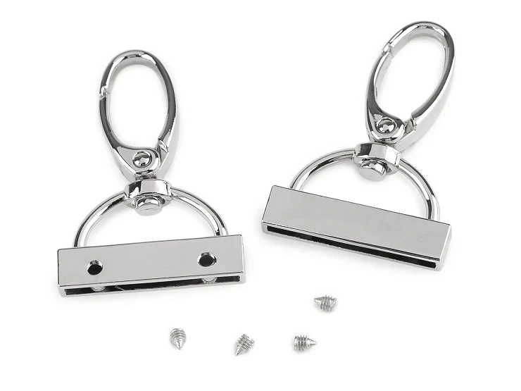 D-128 Końcówki płaskiego paska z karabińczykiem SREBRNE 2 szt