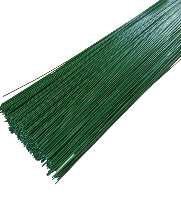 Proste, powlekane, zielone druciki, które mogą posłużyć jako stelaż do kwiatowych łodyżek i innych dekoracji. Druciki są proste i sztywne, dobre do większych kwiatów
