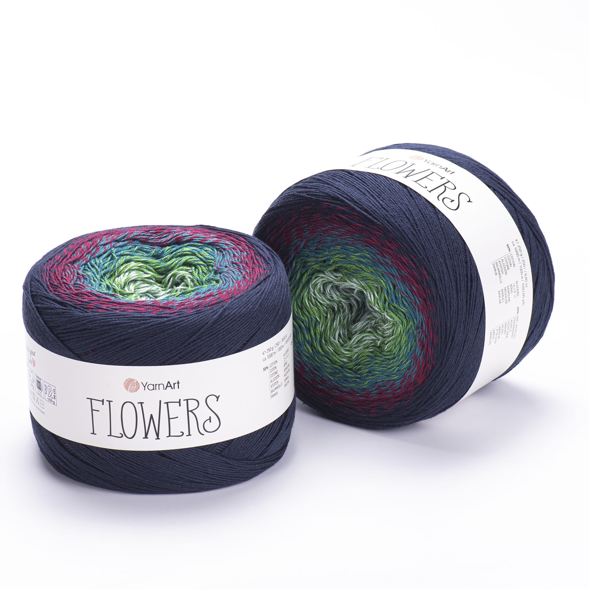 Yarn Art Flowers to piękne, cieniowane i bardzo długie motki idealne na chusty, tuniki, sukienki. Włóczka jest bardzo wydajna, jeden motek powinien wystarczyć nam na zrobienie sporej chusty. Włóczka ma nie tylko dobry skład (mieszanka bawełny z akrylem), dużą zaletą jest to, że pojedyncze nici są ze sobą skręcone. Jest to znaczne ułatwienie pracy, mogę ją śmiało polecić nawet osobom początkującym.