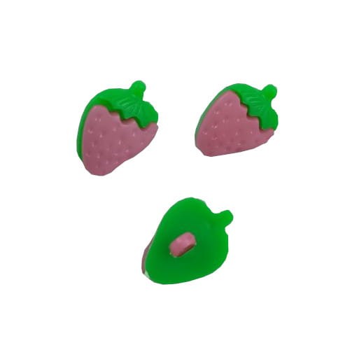 Urocze plastikowe guziczki w kształcie truskawek ozdobią dziecięce ubranka.