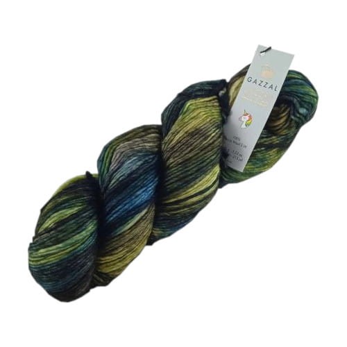 Gazzal Unicorn 1359 odcienie niebieskiego i zieleni ręcznie malowana przędza, 100% wełna merino