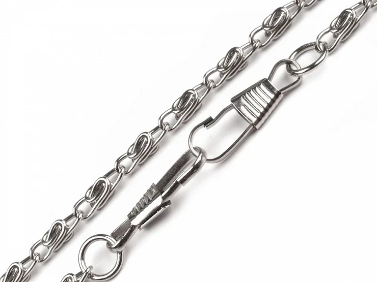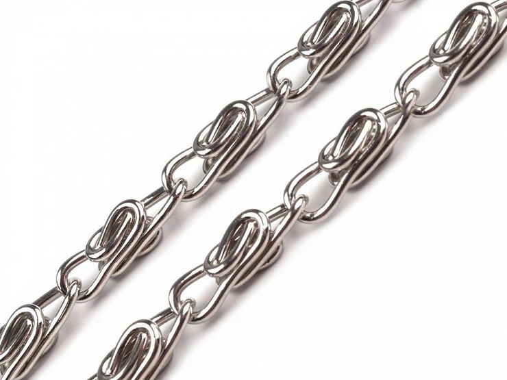 Oczka są podłużne, o szerokości 4 mm, długości 12 mm. Na końcach łańcuszek posiada praktyczne karabińczyki, które łatwo zapinają się na uchwyty w torebce. Pojedyncze oczka można otworzyć za pomocą kleszczy.