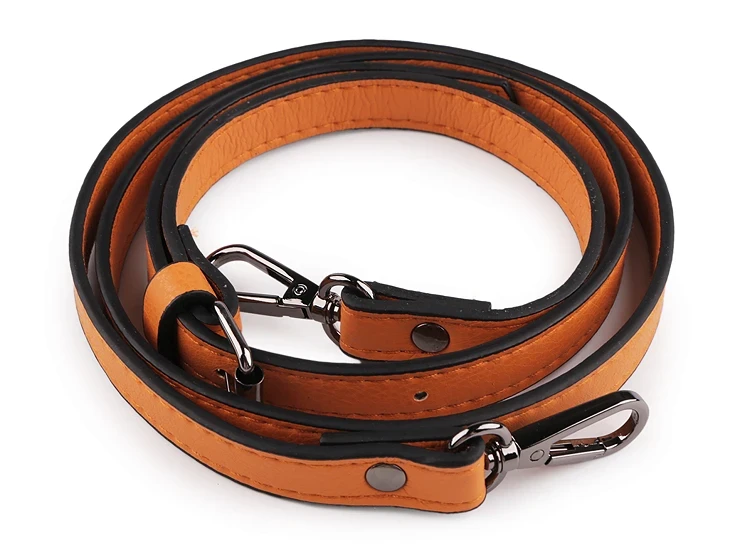 Wykonany z ekskóry pasek do torebki o bardzo starannym wykończeniu. Jest przeszyty i posiada fabrycznie zamontowane karabińczyki w kolorze czarnego niklu