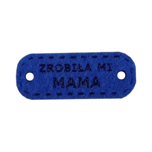 Metka/naszywka z filcu "Zrobiła mi mama" CIEMNY NIEBIESKI