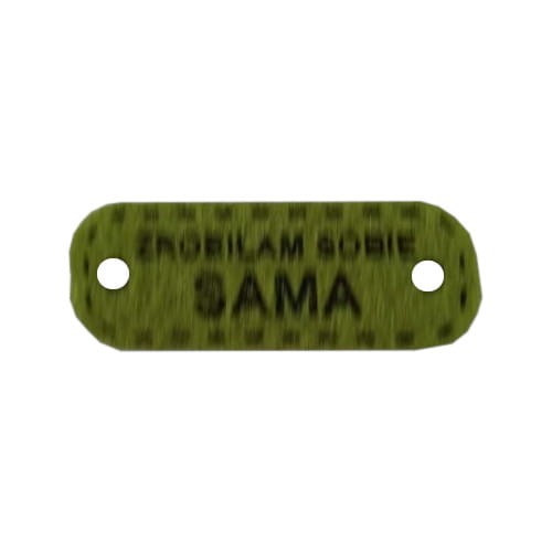 Naszywka ma wymiary około 45 x 18 x 4 mm