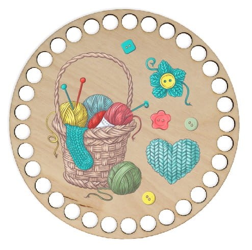 Baza do koszyka drewniana z otworami. Idealna do dziergania ze sznurka bawełnianego, spaghetti, lub ręcznie robionych sznurków z bawełnianych koszulek. Polecam dla początkujących, a także gdy potrzebujesz zrobić prezent "na już".