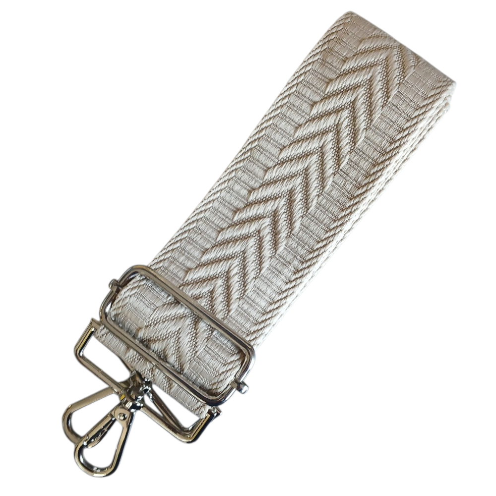 Pasek do torebki regulowany, szeroki (5cm) jasny beżowy ze srebrnym