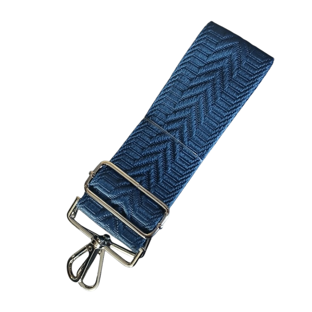 Pasek do torebki regulowany, szeroki (5cm) niebieski jeansowy ze srebrem