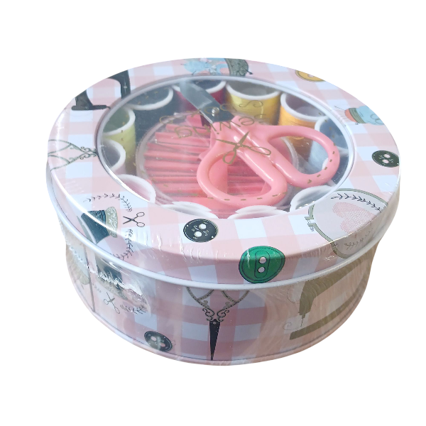 Przybornik krawiecki w metalowej puszce Różowy