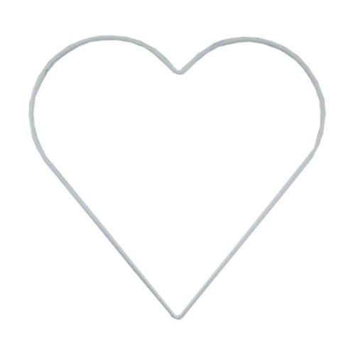 Biała obręcz metalowa w kształcie serca o wymiarach około 20 x 20 cm.