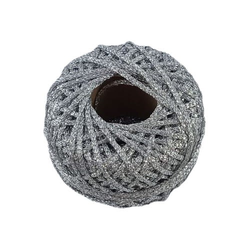 Sznurek brokatowy w kolorze srebrnym. Sznurek ma przepiękny metaliczny połysk. Dostępny jest w nawoju 50 m, grubość nici to około 1 mm.