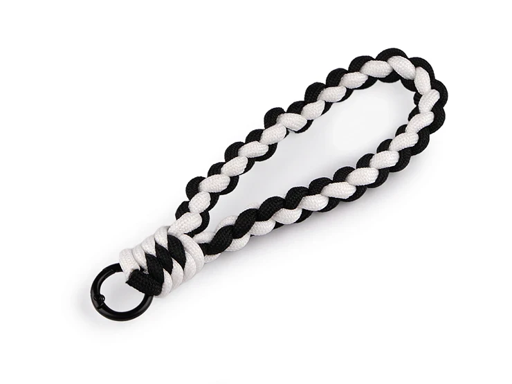 Uchwyt na nadgarstek / pasek z karabińczykiem pleciony biało-czarny