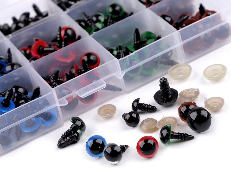Zestaw bezpiecznych oczu w praktycznym pudełeczku z przegródkami.
